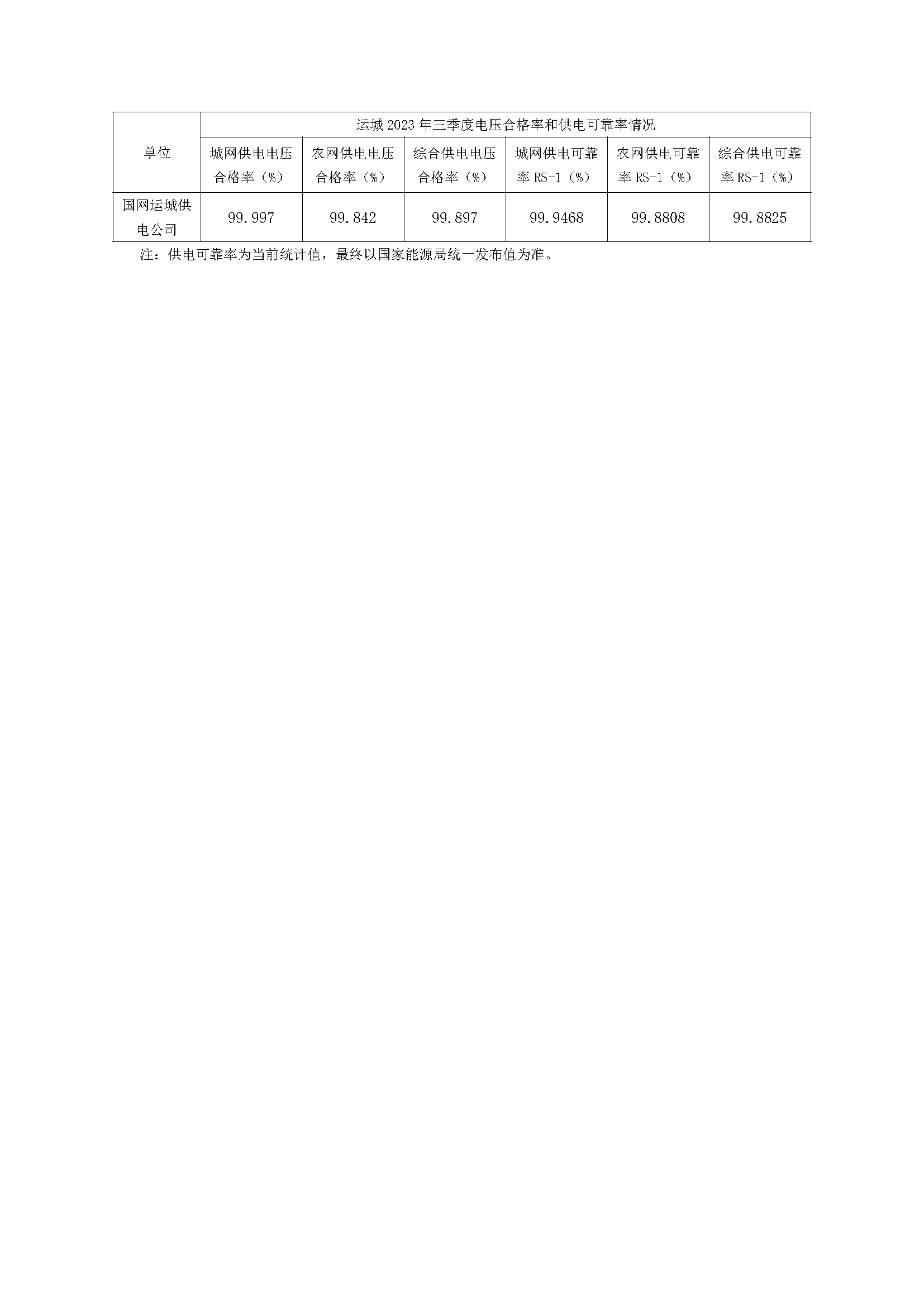 運城2023年三季度電壓合格率和供電可靠率情況